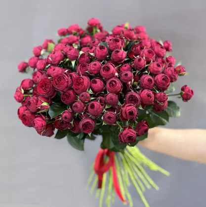 Красно-бордовые пионовидные розы сорта Марун. Очень яркие и страстные, не оставят равнодушной ни одну девушку!