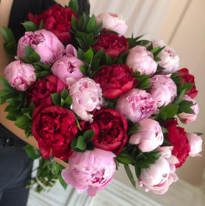 Букет из 21 розовых и красных пионов | Купить в Наро-Фоминске