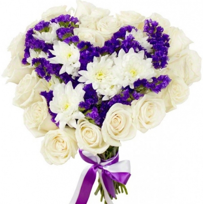 Букет сердцем из роз, хризантем и статицы | Купить в Наро-Фоминске