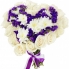 Сердце из белых роз, в центре хризантема и статица.