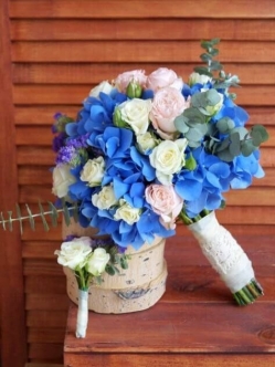 - Сочетаемость: Гортензия прекрасно смотрится как в монобукетах, так и в сложных композициях с пионовидными розами, эустомой и экзотическими цветами.
