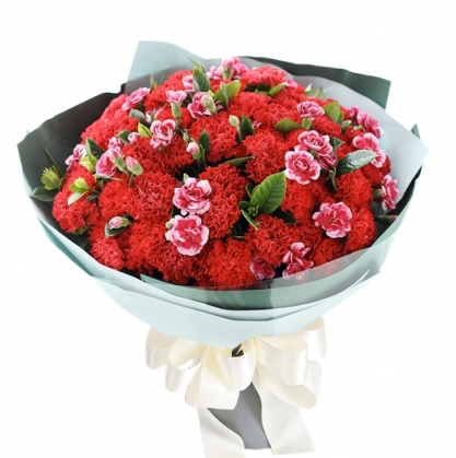 Красивый букет состоящий из гвоздики и рускуса, упакованный в красивую и стильную матовую бумагу
