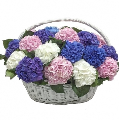 Поистине роскошная, нежная корзина из прекрасных гортензий без сомнений не оставит равнодушным никого! Поражает своей красотой и невероятными размерами!
